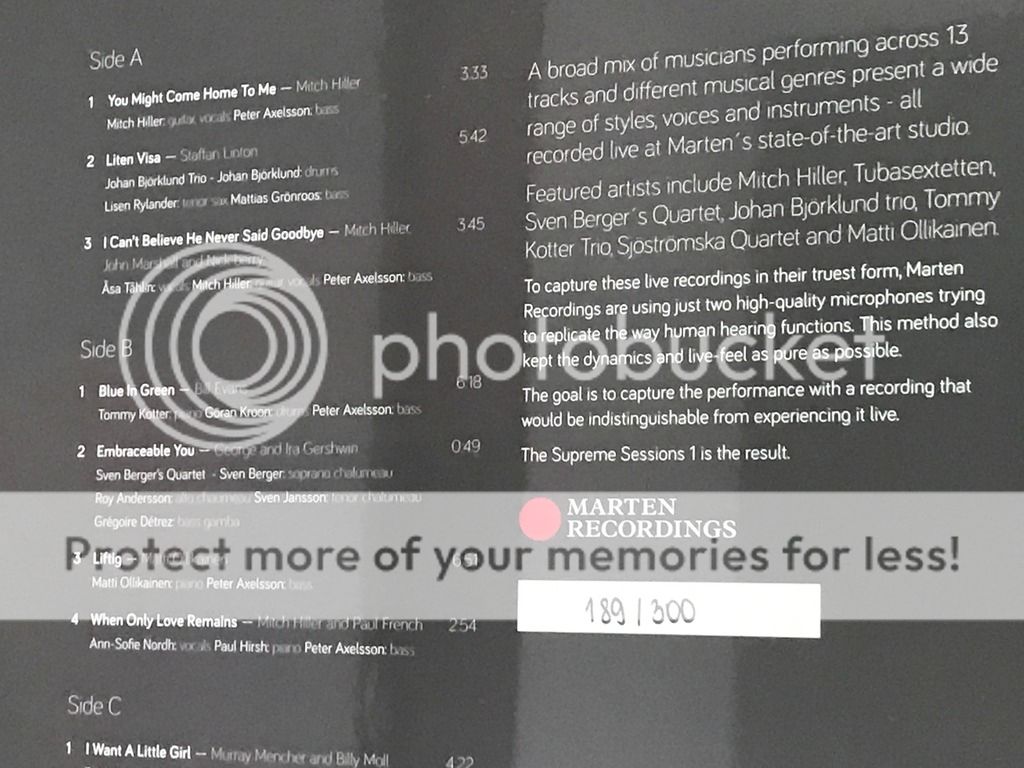 第十一首「Stigen Tillbaks」是薩克斯風主奏的爵樂重奏,此處的薩克斯風錄得非常真實,又兼非常美,但仍然是直接無隱的。而爵士套鼓的敲鼓邊清脆有勁,細碎的鈸一直很溫柔的佈滿空間,小鼓清脆有勁,腳踩大鼓一樣是短促硬調的,這是沒加料的低頻。配合著腳踩大鼓的Bass一樣也是短促的,沒有軟Q的低頻。