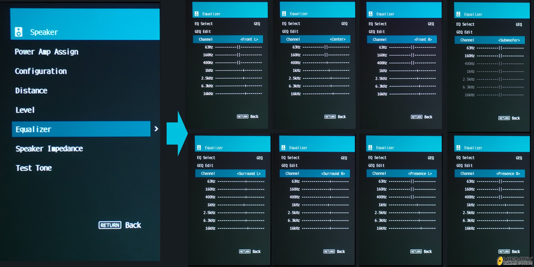 ![]() 百事佬建議大家,就算最終會自行調校擴音機各項設定,都先使用原廠提供的自動校正功能找個標準,然後再於內裡微調,這可加快效率及有更精準的效果。 ![]() ![]() 透過Yamaha的 YPAO- R.S.C.反射聲音控制功能測出結果之後,百事佬利用Dolby Atmos測試碟試聽後進行了以下微調(調校數據只是根據俱樂部聆聽環境和器材而定): ![]() ![]() 以此部份微調人聲EQ ![]() 以此部份微調前後置連貫性 ![]() 以此部份微調前置、後置和天空聲道連貫性 ![]() 以此部份微調DSP Level ![]() 在調校前先確定喇叭配置。 ![]() 將所有喇叭設定為”Small”,Layout設為”Overhead” ![]() 由於Sensa Sound喇叭單元不大,而俱樂部有兩隻超低音喇叭,將前及中置Crossover設為80Hz,後置及天空喇叭設為90Hz,可減輕主聲道負擔。Distance方面,一般經自動校正功能之後都能測出準確距離,但多數情況下超低音(Subwoofer)都會比實際距離遠,這是因為房間反射所致,用家可以和實際距離對比一下,聽聽那一個設定比較準確到皇帝位,那就選擇這個便可以了。 ![]() 百事佬會用試機碟之片段實聽一下,之後再微調各聲道,一般而言都會將後、後中及天空聲道加大音壓來增加連貫性。 ![]() Equalizer由於是入門級別,沒有PEQ作多方面調整,不過仍可以就選定的頻段中改變聲音來加強聲音連貫和質感。 ![]() Tone Control可一併將所有喇叭調整高及低音。 ![]() 如沒有天空聲道喇叭,可以透過Virtual Speaker來模擬天空聲道,從而加強電影效果。 ![]() 除非用家是在夜間觀看電影,否則不要將YPAO Volume設為"On"。