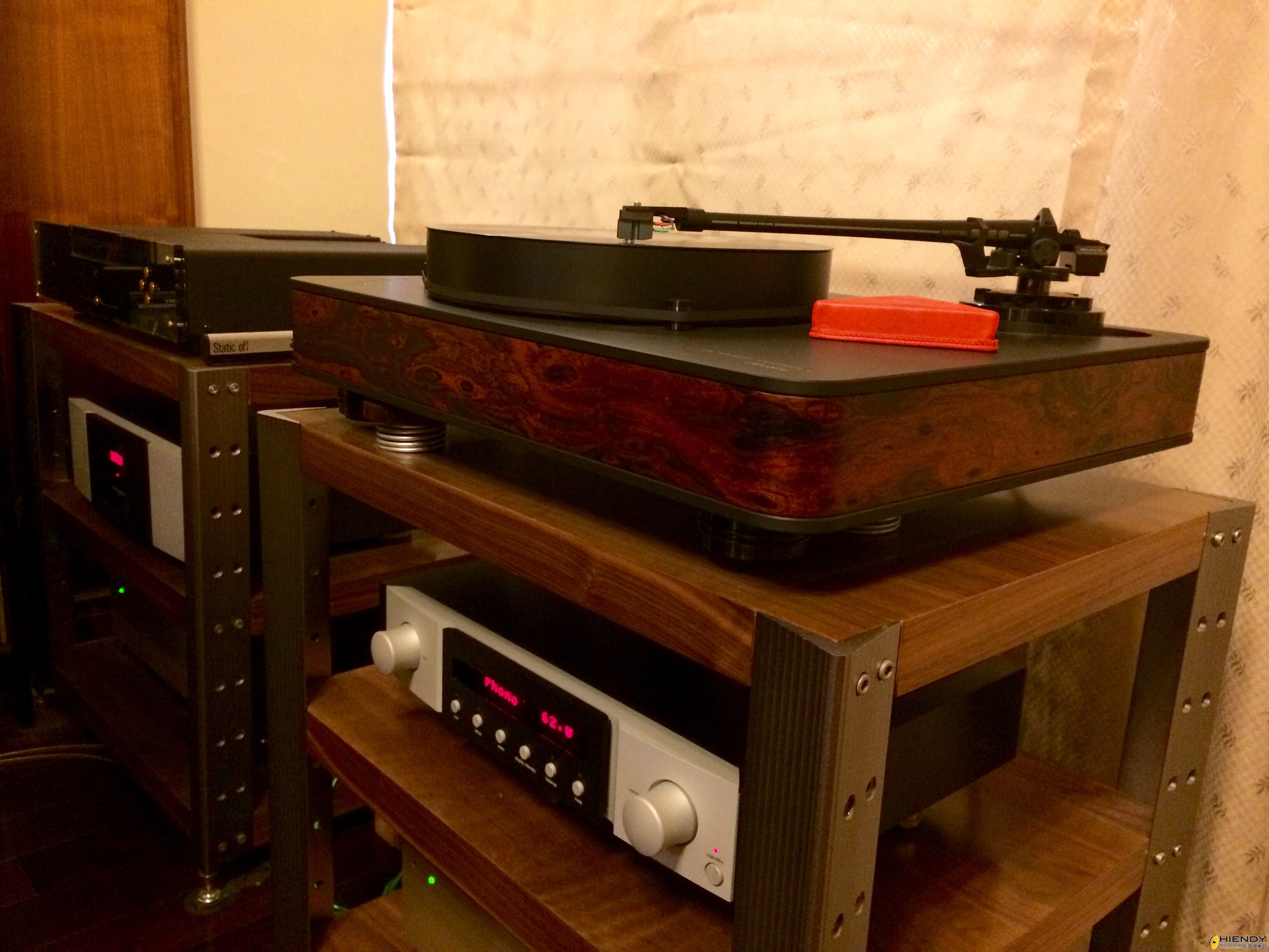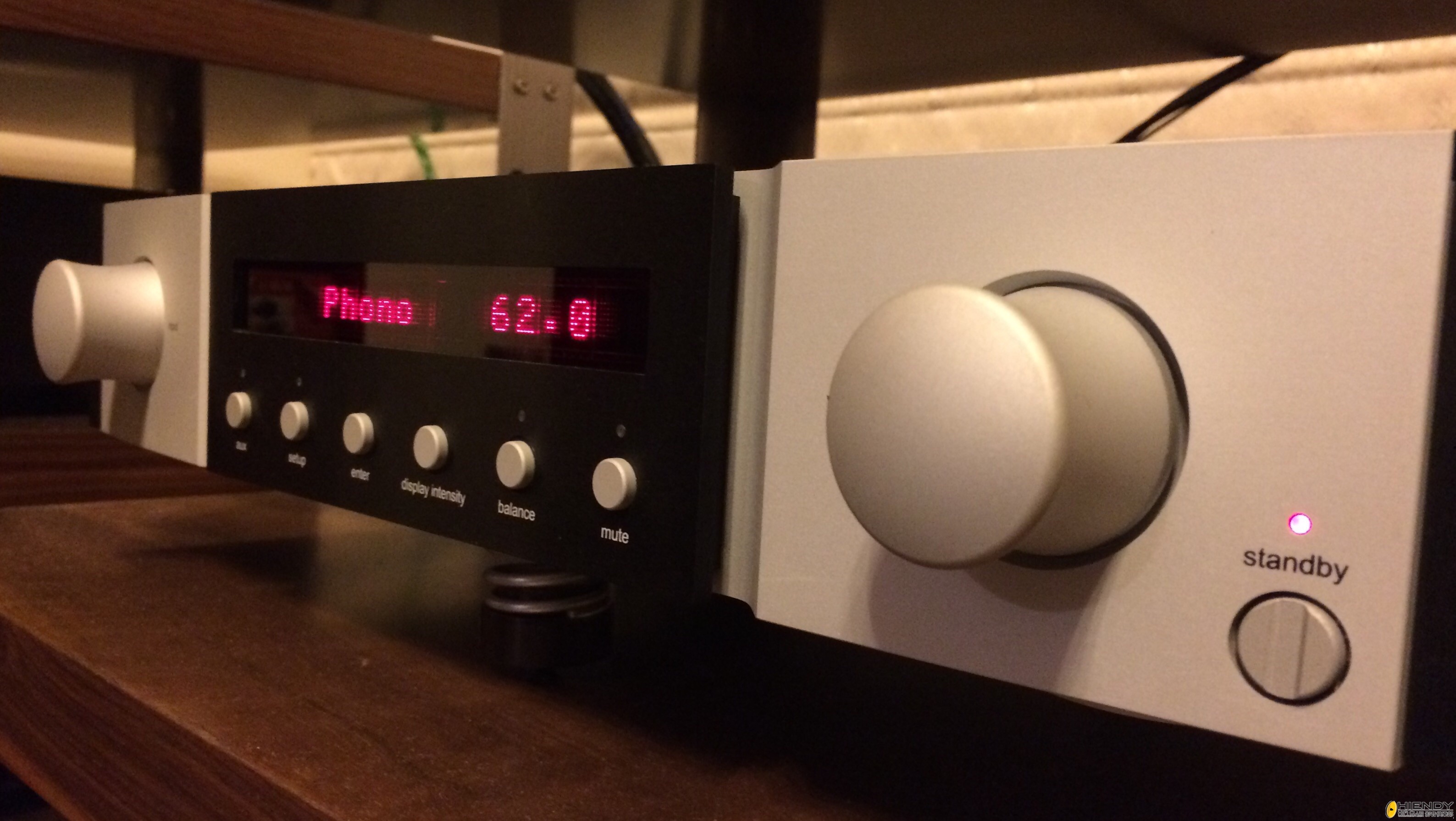對於這台身價不菲(對我來說)的前級,我打醒萬二分精神,小心翼翼地放置在機架上,兩個機箱分別擺放;訊源分別接駁上CD 機(Electrocompaniet EMC 1UP,XLR連接) 和我的火鳥黑膠唱盤(Dr. Feickert Firebird, SME312S, Ortofon Cadenza Bronze, AirTight PC-5),後級是兩台經摩改過的單聲道TOA擴音機,輸出有275W,而喇叭是比較冷門的Elipson 4240 Millennium。