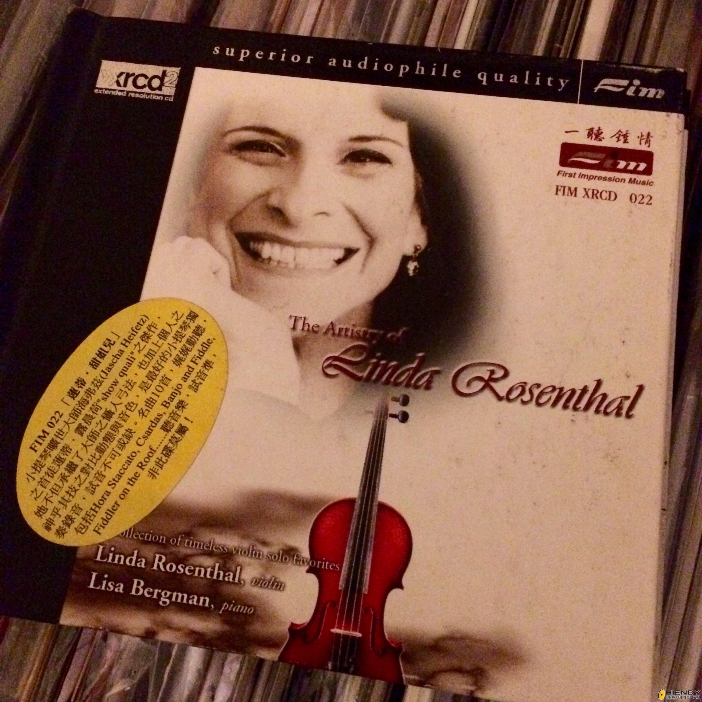 小提琴是我最喜歡的樂器之一,試機更是不可或缺的項目,又是一張朋友借來的CD,”The Artistry of Linda Rosenthal” (FIM XRCD2),有朋友上來想聽No.52,雖然他們都喜歡聽黑膠唱片,但我都堅持要他們先聽這張CD的幾首曲子,才會轉去聽黑膠。原因很簡單,這幾首曲子 不但動聽,而且可以展示小提琴的質感,播放小提琴又好,大提琴也好,一定要有種擦絃的質感,不可太粗糙,也不要太多的修飾而過於幼滑。