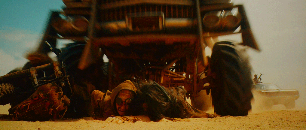 在不死老喬車隊追擊下,沙芙莉歐莎試圖穿過沙塵暴來迴避追兵