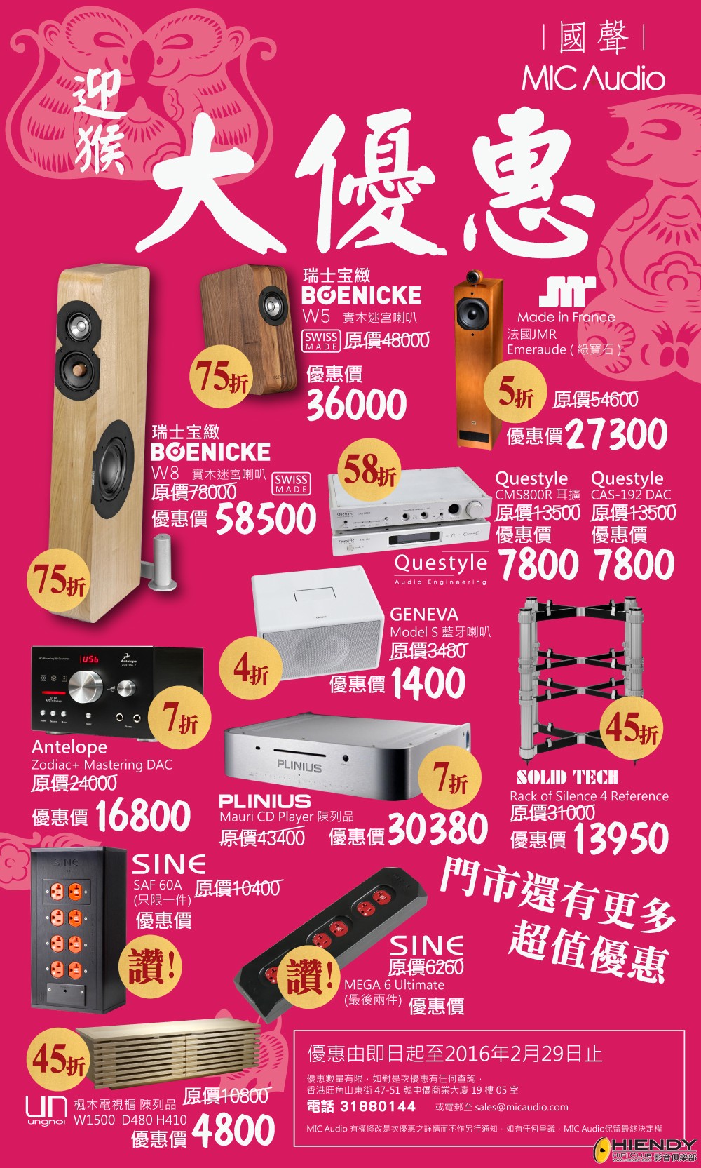 由即日起至2016年2月29日 全店舉行超值大優惠,部份貨品史無前例低至半價