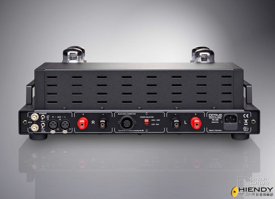 德國著名膽機品牌 OCTAVE(八度)立體聲真空管功率放大器 RE 290 是暫時該廠輸出最大的一部,但會不會有被另一款超越它?大家唯有拭目以待。RE290採用3支 ECC82 和4支 KT120 真空管推挽式放大設計,提供兩種功率輸出模式,包括有2 x 130W(4Ω)的高功率模式和2 x 90W(4Ω)的低功率模式,以適配不同效率的揚聲器。 RE 290的設計及參數和音質都達到了高水準,高準確度的相位和平直寬闊的頻率響應,精心製作的電源變壓器具有低損耗和完善的電磁屏蔽,使播放音樂時的底噪降 至最低,獨特設計的輸出變壓器,實現聲音中性、充滿豐富細節栩栩如生的音樂重播。