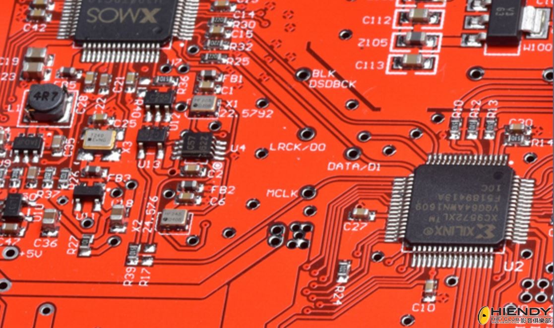 CPLD 數位處理部分,為了獲得更好的音頻性能,在XMOS輸出之後,還增加了一片CPLD作為數字處理及隔離,這個特別的數位處理消除 XMOS 與 AK4495 組合讓很多廠家都未能解決的比較嚴重的潛在問題,XILINX則是對USB進行數字處理,降低抖動的CPLD模塊,讓更純淨的信號進入DAC。