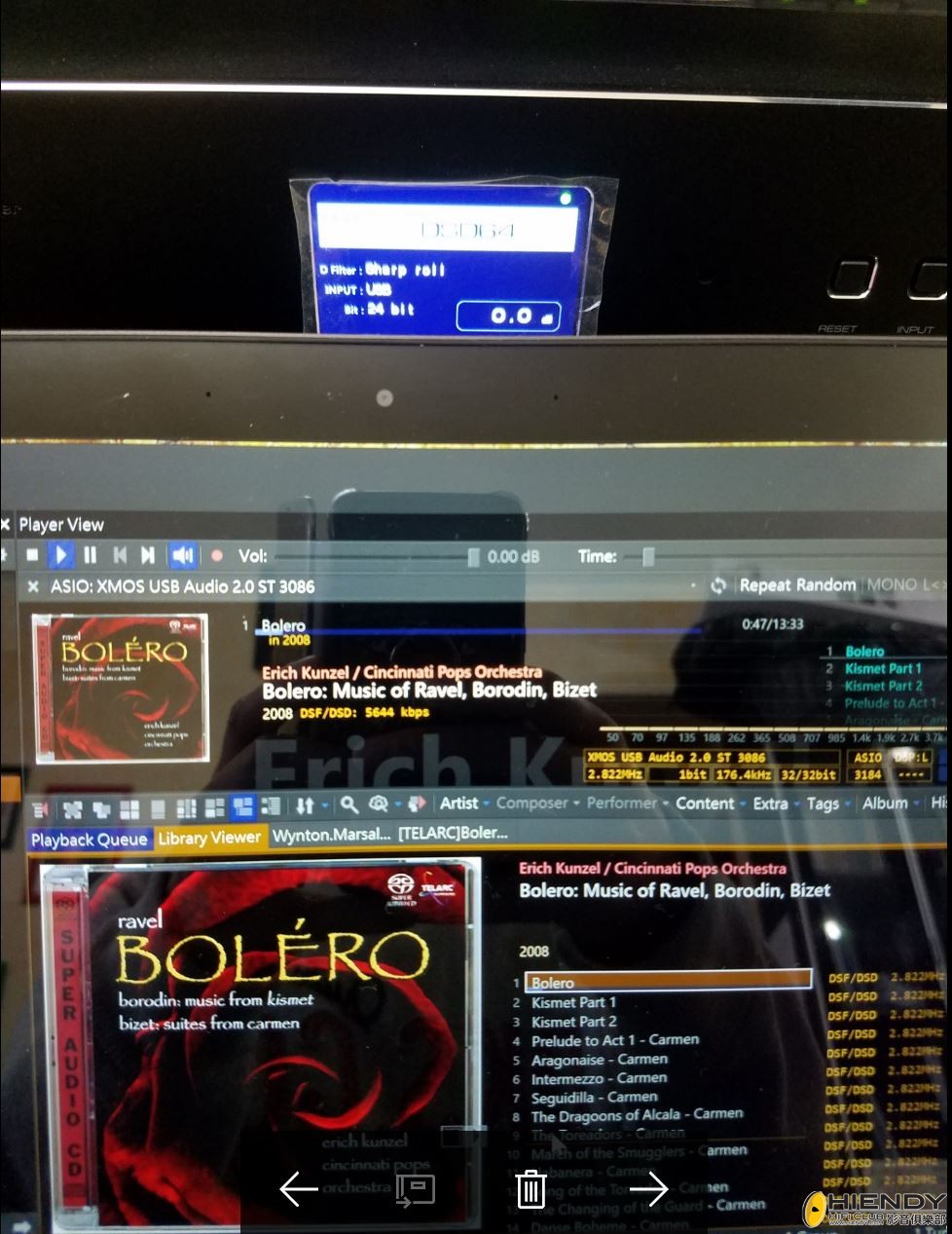 再用另一個軟件測試,這個軟件可以將音樂數據上載到 RAM 播放,利用 RAM 的速度做無損傳送。測試的軟件是古典的音樂 SACD,已經轉左做 DSF 文件,聽 “Ravel Bolero” 在開始的單一鼓聲開始,長笛獨奏,聽感細緻,背景寧靜,冇底噪。去到中後段中低頻有力,冇散開嘅感覺。
