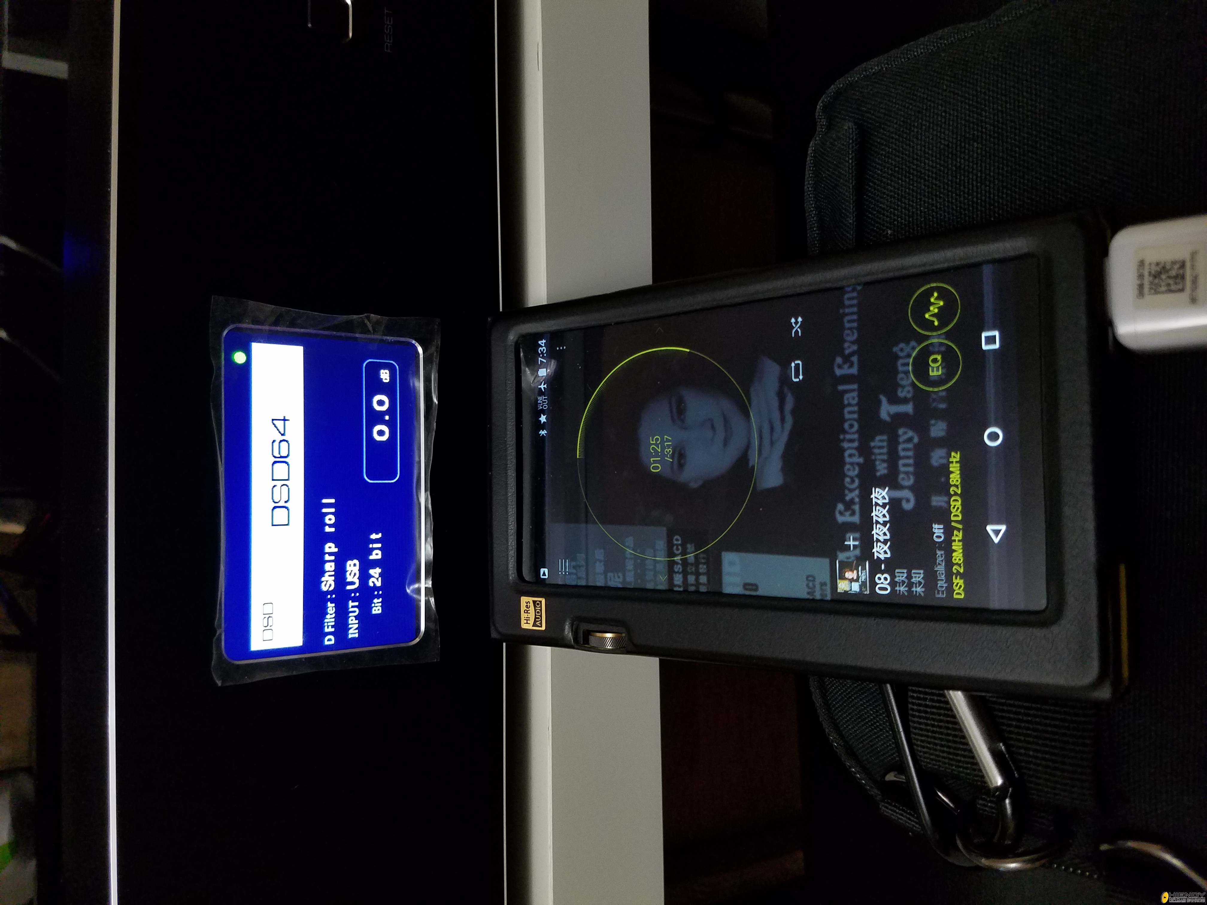 再用其它音源測試,ONKYO DP-X1,直接用 USB 線連接 DP-X1,不用安裝 USB Driver,測試的軟件是甄妮唱的 “夜夜夜夜”,鋼琴伴著甄妮獨唱,鋼琴聲再在左後響起。人聲迷人通透,鋼琴聲粒粒音在左後跳出來,比我單用 DP-X1 出還要細緻。這個應該是 9018 和 4495 的差異,聲音有人味道,無左數碼的感覺。