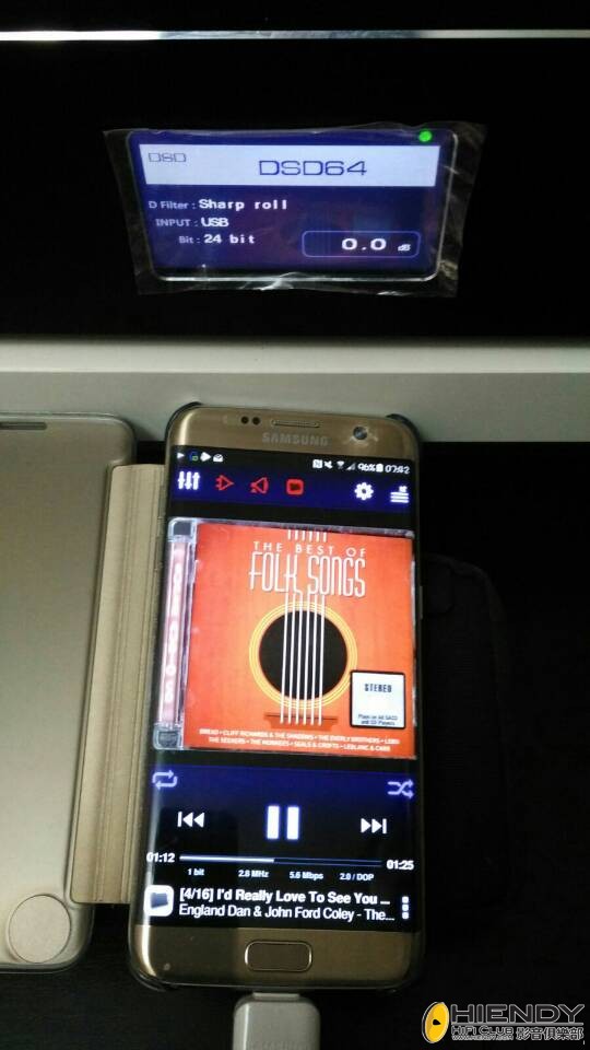 最後用手機連接,沒做特別的調整,直接用 USB 線連接,不用安裝 USB Driver,使用了Neutron 做播放,測試的軟件是SACD 英文歌曲 “I’d Really love to see you tonight”,England Dan and John Ford Coley, 聽感沒 DP-X1 立體,不過背景寧靜,鋼琴聽到小小尾音,細節必定比用 Samsung 耳機出聲多好多。