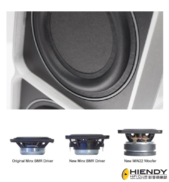 Minx衛星揚聲器備有兩種尺寸:單驅動單元的Min 12和雙驅動單元的Min 22。兩款型號都使用了獨家的BMR®揚聲器技術,能產生非常寬廣的聲音擴散效能,而配備了輔助專用低頻驅動單元的Min 22將能給你加倍的低音動力。意味你可獲得更豐富的能量,控制力及反應。
