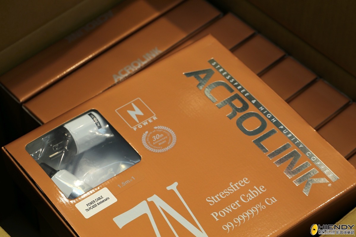 Acrolink 為了紀念由Acrotech 轉名到 Acrolink 30週年而推出7N-PC4020 Anniversario及7N-PC4030 Anniversario 紀念版本電源線,新版本除了堅持該廠一直主張的高純度銅導體發出那種溫暖自然音色外,Anniversario紀念版本特別改良了線材外皮材質及屏蔽物料,比舊一代有更良好的階震控制及阻隔外來干擾的能力。紀念版本廠線為1.5M,