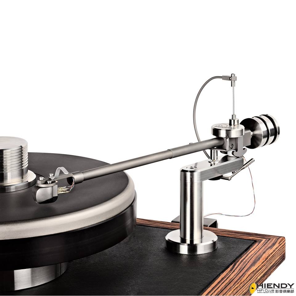 另外,臂座、臂板和柱子均採用不鏽鋼材料,穩定度和抑制唱臂帶來的諧震比一般的金屬更佳,所以,用家可安裝不同重量和長度的唱臂。廠方也研發了自己的一款12吋唱臂,名為Cantano T,特色是整支唱臂選用鈦合金製造,而且是單點式(Uni-privot)承軸設計,軸頂上連接著一根小彈簧和支架,作用是方便調節唱臂的反偏壓(Anti-skating)
