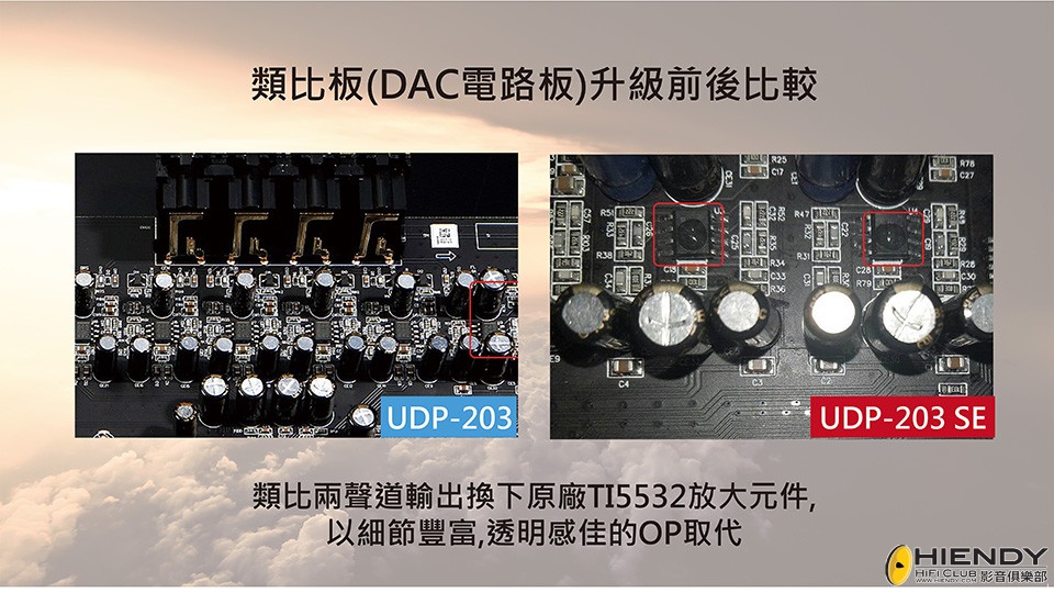 奧雲會先以UDP-203 普通版播一次,然後即時將同一組線材更換到UDP-203 SE版再聽一次,希望傳媒可更容易分辨到兩者的分別